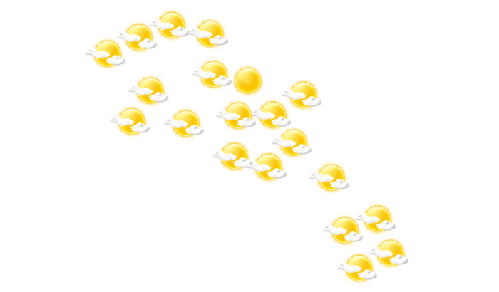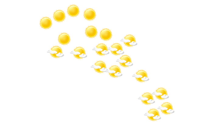 In Bayford’s zeigt sich von morgens bis zum Nachmittag die Sonne zwischen einzelnen Wolken und die Temperaturen liegen zwischen 22 und 23°C. Abends gibt es in Bayford’s keine Wolken bei Werten von 22°C. Nachts bilden sich vereinzelt Wolken bei einer Temperatur von 22°C. Der Wind weht aus östlicher Richtung mit Geschwindigkeiten von 26 bis 29 km/h.