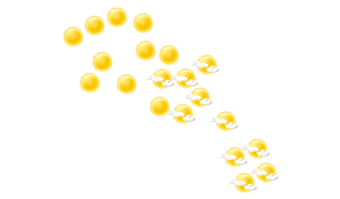 In Cliftons ist es von Tagesbeginn bis zum Nachmittag locker bewölkt und die Temperaturen liegen zwischen 24 und 25°C. Am Abend gibt es in Cliftons einen wolkenlosen Himmel bei Werten von 24°C. Nachts ist es überwiegend klar mit vereinzelten Wolken bei Werten von 24°C. Mit Geschwindigkeiten von 34 bis 38 km/h weht der Wind aus östlicher Richtung.