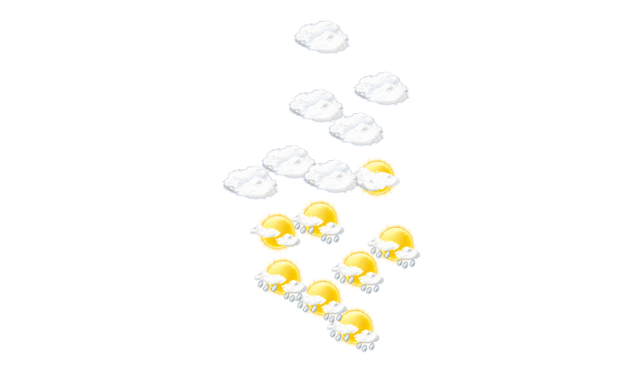 In Balembouche kann sich morgens die Sonne nicht durchsetzen und es bleibt bedeckt und die Temperatur liegt bei 25°C. Mittags kann es zeitweise etwas Regen geben und die Temperatur erreicht 28°C. Am Abend ist es in Balembouche wolkig und die Temperatur liegt bei 25°C. Nachts wechseln sich Regen und trockene Phasen ab bei Tiefstwerten von 26°C. Mit Geschwindigkeiten von 28 bis 32 km/h weht der Wind aus nordöstlicher Richtung. Mit Böen zwischen 33 und 39 km/h ist zu rechnen.