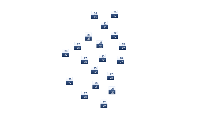 | 28 | 27 | 28 | 29 | 29 | 29 | 28 | 30 | 30 | 30 | 29 | 28 |