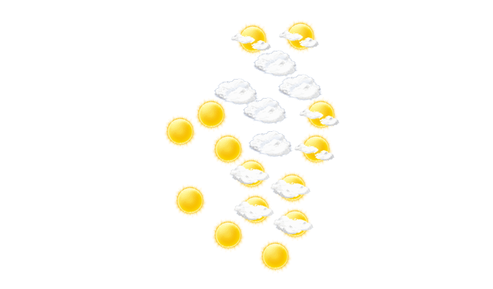 In Barrouallie gibt es den ganzen Tag strahlenden Sonnenschein und die Temperaturen liegen zwischen 25 und 26°C. In der Nacht ist es klar bei Tiefsttemperaturen von 25°C.