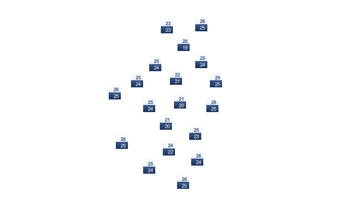 | 23 | 23 | 23 | 24 | 24 | 24 | 24 | 24 | 25 | 24 | 24 | 23 |