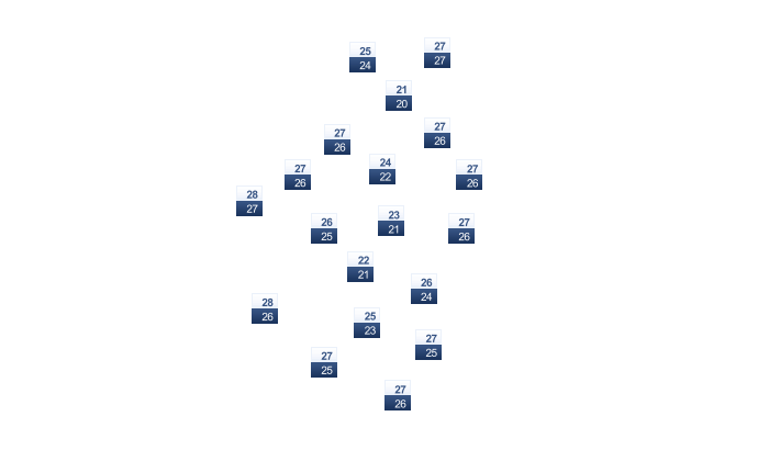 | 28 | 27 | 28 | 29 | 29 | 29 | 28 | 30 | 30 | 30 | 29 | 28 |