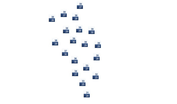 | 35 | 37 | 40 | 41 | 39 | 35 | 32 | 31 | 33 | 35 | 37 | 36 |