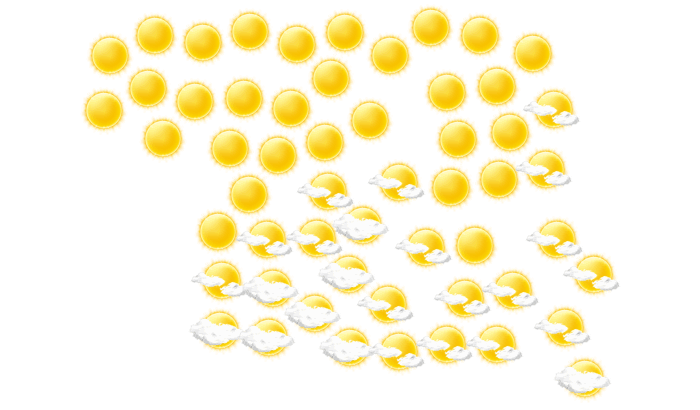In Ad-Damir zeigt sich den ganzen Tag die Sonne zwischen einzelnen Wolken bei Werten von 32 bis zu 39°C. In der Nacht fällt Regen und die Werte gehen auf 30°C zurück.