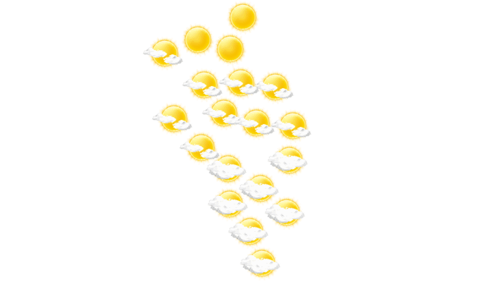 In Sannar bilden sich morgens leichte Wolken bei Werten von 23°C. Gegen später gibt es einen wolkenlosen Himmel und die Temperatur erreicht 35°C. Abends stören in Sannar nur einzelne Wolken den sonst blauen Himmel bei Werten von 26 bis zu 29°C. Nachts ist es überwiegend klar mit vereinzelten Wolken und die Luft kühlt sich auf 22°C ab.