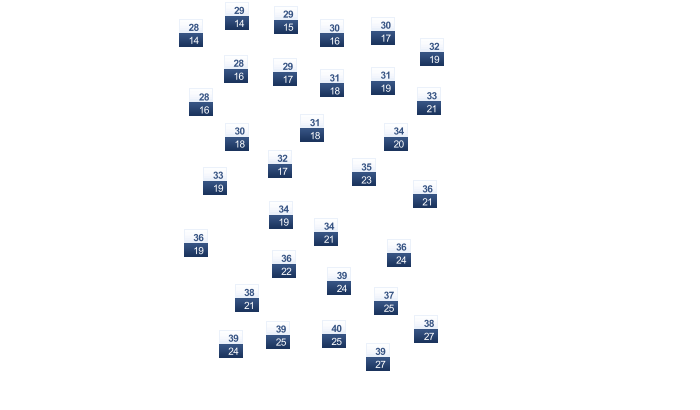 | 17 | 18 | 22 | 24 | 25 | 23 | 22 | 21 | 21 | 21 | 19 | 17 |