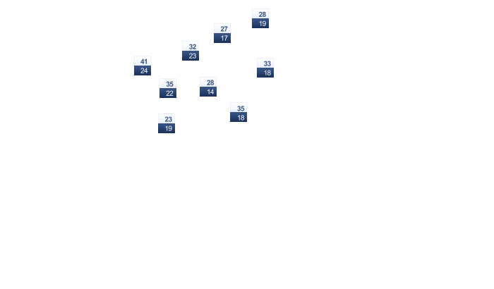 | 31 | 29 | 27 | 23 | 20 | 17 | 17 | 20 | 24 | 26 | 28 | 30 |