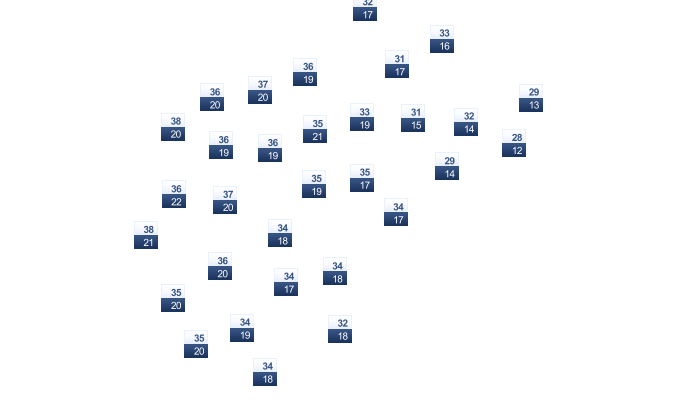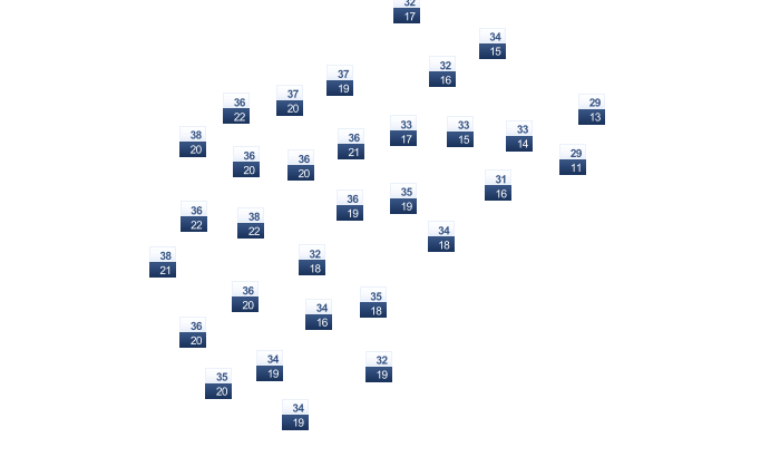 | 31 | 29 | 27 | 23 | 20 | 17 | 17 | 20 | 24 | 26 | 28 | 30 |