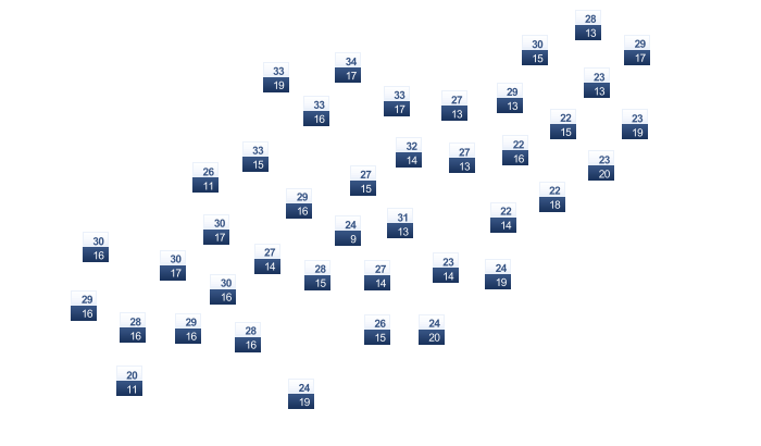 | 31 | 29 | 27 | 23 | 20 | 17 | 17 | 20 | 24 | 26 | 28 | 30 |