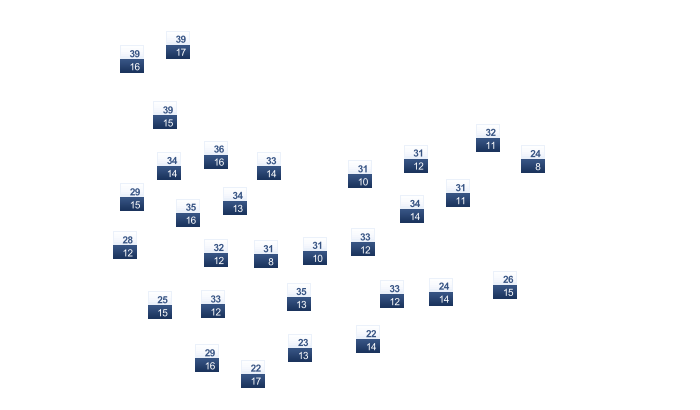 | 31 | 29 | 27 | 23 | 20 | 17 | 17 | 20 | 24 | 26 | 28 | 30 |