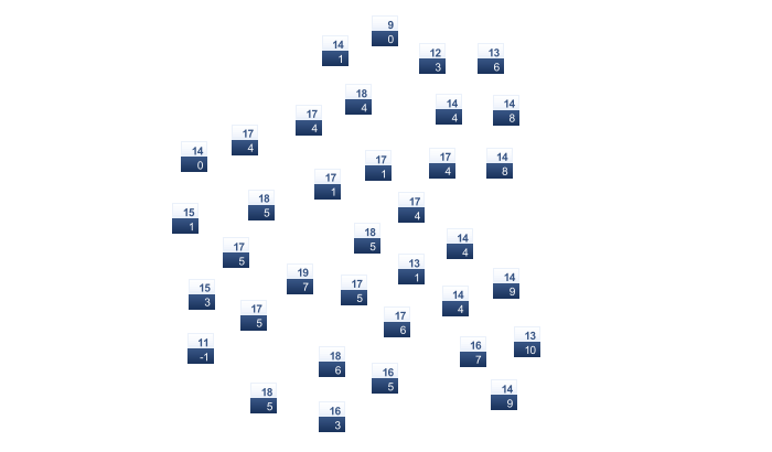 | 7 | 8 | 13 | 17 | 21 | 24 | 27 | 29 | 26 | 22 | 16 | 10 |
