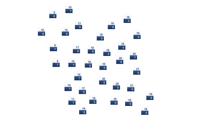 | 7 | 8 | 13 | 17 | 21 | 24 | 27 | 29 | 26 | 22 | 16 | 10 |