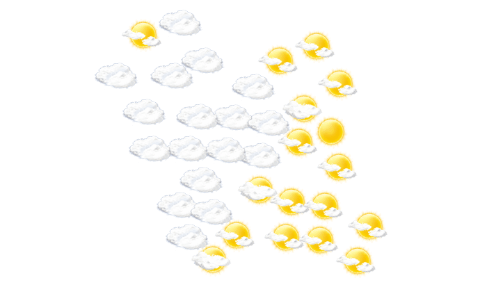 In Yuseong bilden sich tagsüber vereinzelt Wolken bei Werten von -5 bis zu 0°C. Nachts bilden sich leichte Wolken und die Werte gehen auf -8°C zurück.