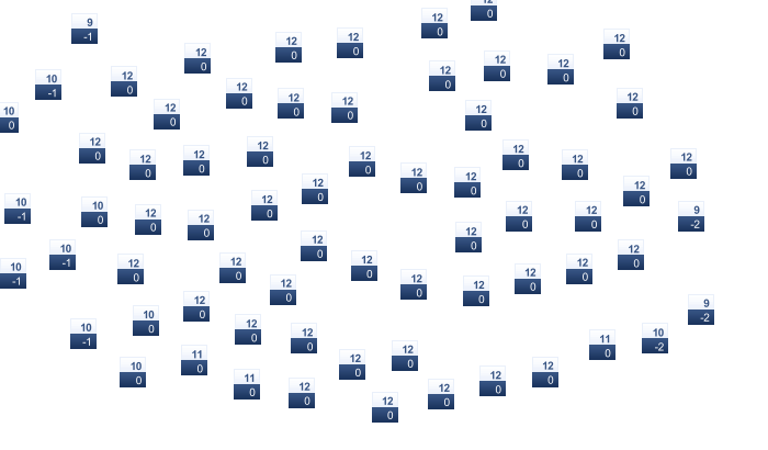 | -1 | 0 | 4 | 9 | 14 | 18 | 22 | 23 | 19 | 14 | 7 | 1 |