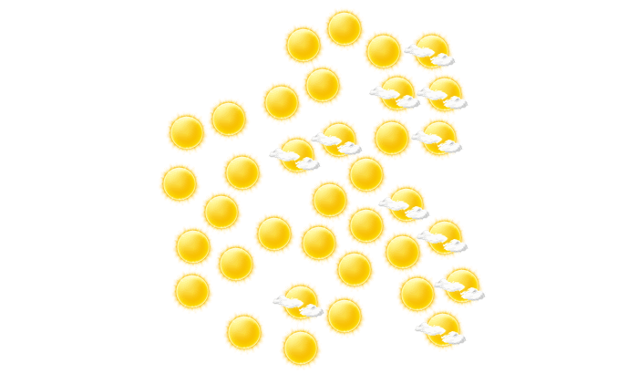 In Gumi ist es morgens sonnig und die Temperatur liegt bei 3°C. Später wird die Sonne von einzelnen Wolken verdeckt bei Höchstwerten von 12°C. Abends gibt es in Gumi keine Wolken bei Werten von 7 bis zu 9°C. Nachts ist es wolkenlos bei Tiefstwerten von 4°C.