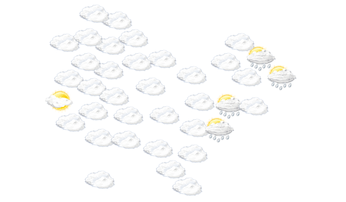 In Mijo überwiegt am Morgen dichte Bewölkung aber es bleibt trocken bei Temperaturen von 13°C. Darüber hinaus fällt von mittags bis zum Abend hin Regen bei Werten von 12 bis zu 14°C. Nachts ist es bedeckt bei Tiefsttemperaturen von 13°C. Mit Geschwindigkeiten von 12 bis 35 km/h weht der Wind aus nordöstlicher bis nördlicher Richtung.