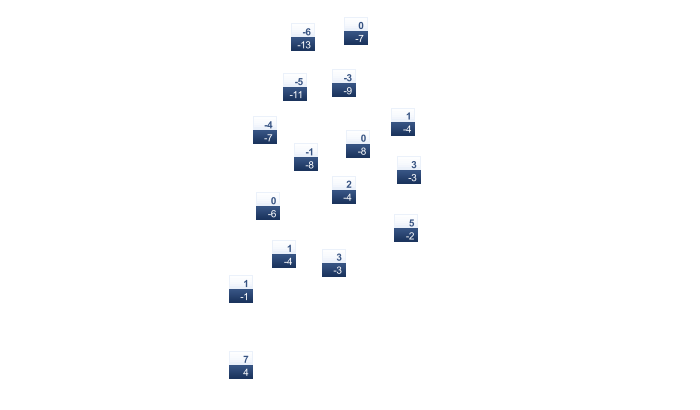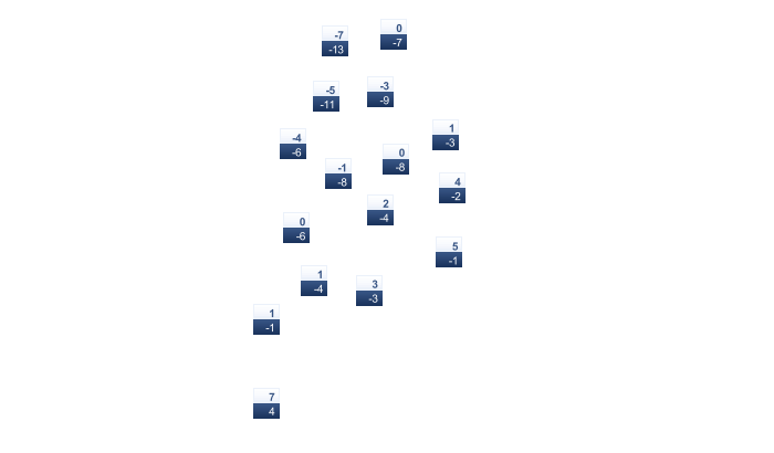 | -1 | 0 | 4 | 9 | 14 | 18 | 22 | 23 | 19 | 14 | 7 | 1 |