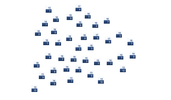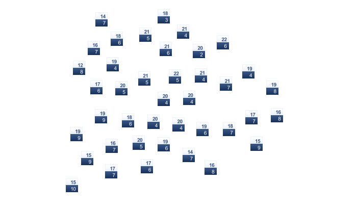 | 7 | 8 | 13 | 17 | 21 | 24 | 27 | 29 | 26 | 22 | 16 | 10 |