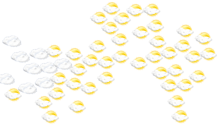 In Onverwacht bleibt morgens die Wolkendecke geschlossen bei Werten von 22°C. Im weiteren Tagesverlauf ziehen am Nachmittag und am Abend Wolkenfelder durch bei Werten von 24 bis zu 33°C. In der Nacht bilden sich leichte Wolken bei Tiefsttemperaturen von 22°C.