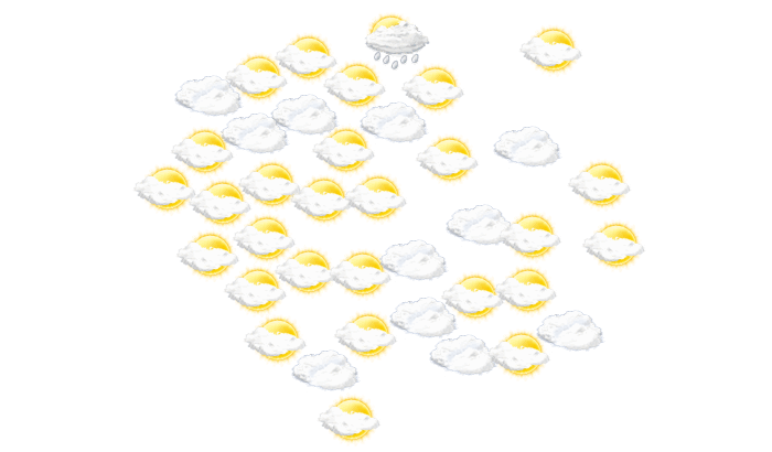 In Apotheki sind morgens Teile des Himmels mit Wolken bedeckt, die Sonne ist aber zwischendurch sichtbar bei Temperaturen von 21°C. Darüber hinaus bleibt mittags und auch abends die Wolkendecke geschlossen bei Werten von 22 bis zu 31°C. In der Nacht ist ein Blick auf die Sterne nur vereinzelt bei sonst wolkigem Himmel möglich und die Temperatur sinkt auf 20°C.
