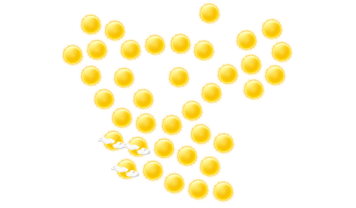 | 10 | 13 | 17 | 22 | 29 | 34 | 36 | 36 | 33 | 27 | 19 | 12 |