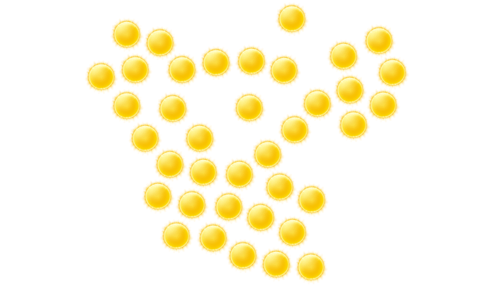 | 10 | 13 | 17 | 22 | 29 | 34 | 36 | 36 | 33 | 27 | 19 | 12 |