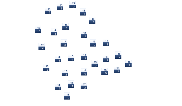 | 2 | 3 | 5 | 9 | 14 | 18 | 21 | 21 | 18 | 13 | 7 | 3 |