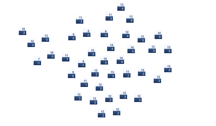 | 2 | 3 | 5 | 9 | 14 | 18 | 21 | 21 | 18 | 13 | 7 | 3 |