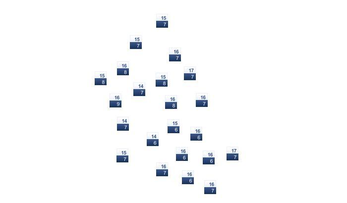 | 2 | 3 | 5 | 9 | 14 | 18 | 21 | 21 | 18 | 13 | 7 | 3 |