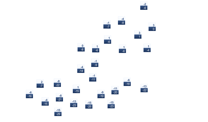 | -3 | 0 | 4 | 9 | 13 | 16 | 18 | 16 | 11 | 6 | 3 | 0 |