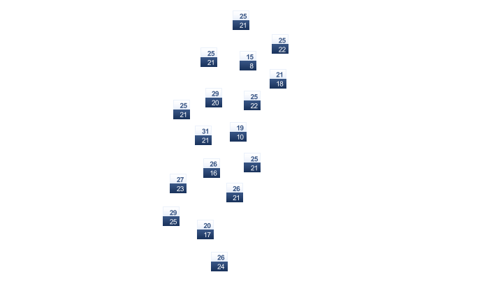 | 11 | 11 | 14 | 16 | 17 | 18 | 19 | 18 | 18 | 18 | 15 | 12 |