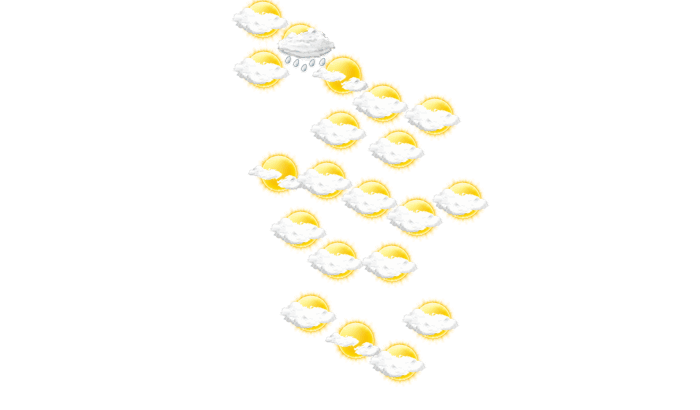 In Kirando zeigt sich am Morgen die Sonne nur vereinzelt bei sonst wolkigem Himmel und die Temperatur liegt bei 22°C. Mittags sind anhaltende Schauer zu erwarten und die Temperaturen erreichen 26°C. Am Abend ziehen in Kirando Wolkenfelder durch bei Werten von 24 bis zu 25°C. Nachts ist es wolkig bei einer Temperatur von 22°C.