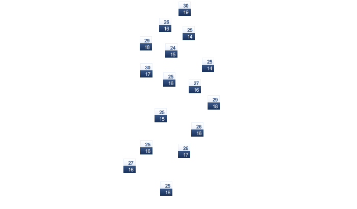 | 13 | 14 | 15 | 16 | 15 | 13 | 12 | 12 | 13 | 13 | 14 | 14 |