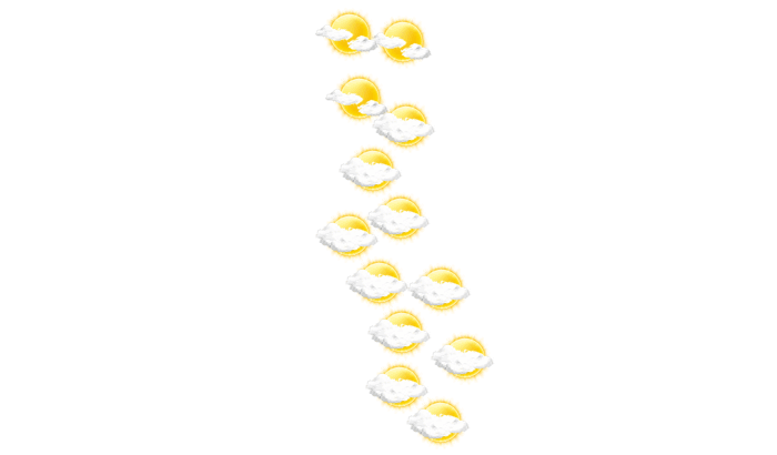 In Welezo ist es am Morgen bewölkt, die Sonne zeigt sich nur vereinzelt bei Temperaturen von 26°C. Darüber hinaus ist es vom Nachmittag bis abends locker bewölkt und die Temperaturen liegen zwischen 27 und 31 Grad. Nachts ist es überwiegend klar mit vereinzelten Wolken bei Tiefstwerten von 26°C.