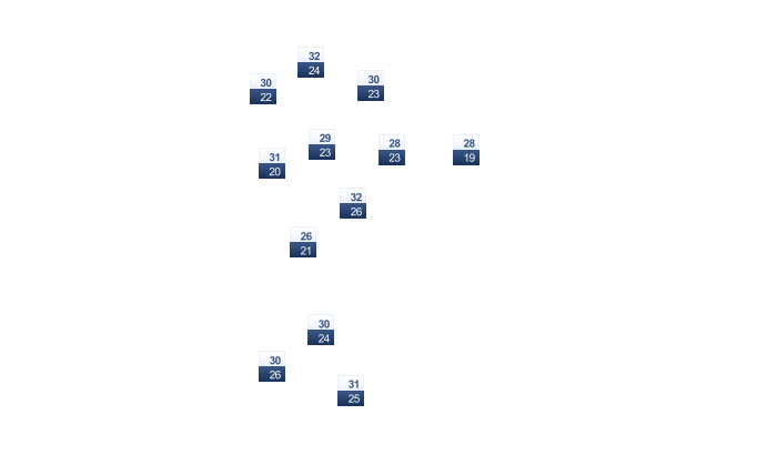 | 32 | 33 | 34 | 35 | 34 | 33 | 33 | 33 | 32 | 32 | 32 | 31 |