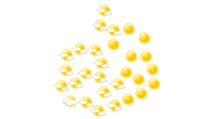 In Phak Hai strahlt von Tagesbeginn bis zum Nachmittag die Sonne bei Werten von 26 bis zu 38°C. Abends bilden sich in Phak Hai leichte Wolken bei Werten von 29 bis zu 33°C. Nachts ziehen Wolkenfelder durch bei Tiefsttemperaturen von 25°C.