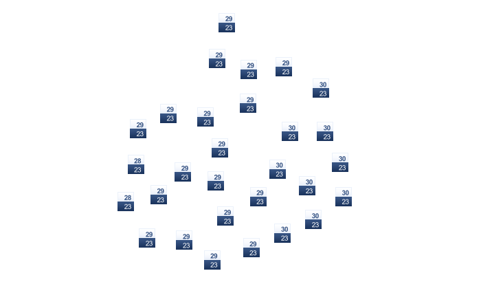 | 21 | 23 | 25 | 26 | 26 | 25 | 25 | 25 | 25 | 24 | 23 | 21 |