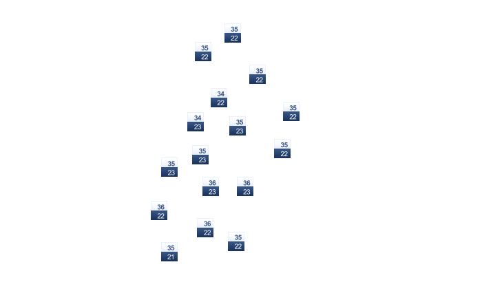 | 32 | 33 | 34 | 35 | 34 | 33 | 33 | 33 | 32 | 32 | 32 | 31 |