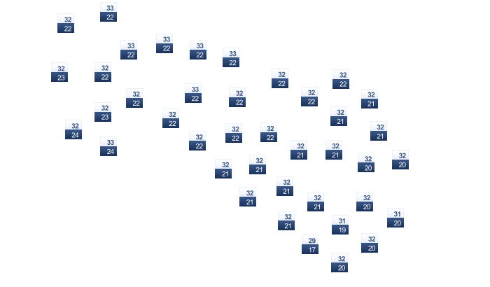 | 32 | 33 | 34 | 35 | 34 | 33 | 33 | 33 | 32 | 32 | 32 | 31 |