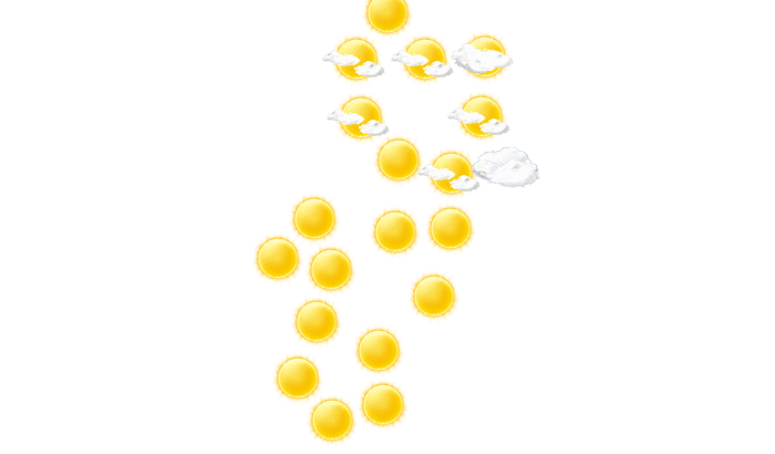 In Wiang Sa scheint am Morgen die Sonne bei Temperaturen von 16°C. Gegen später gibt es überwiegend blauen Himmel mit vereinzelten Wolken und die Höchstwerte liegen bei 32°C. Abends ist es in Wiang Sa wolkenlos bei Werten von 21 bis zu 25°C. Nachts ist es klar bei Werten von 18°C.