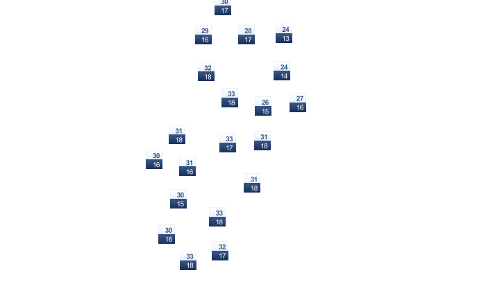 | 32 | 33 | 34 | 35 | 34 | 33 | 33 | 33 | 32 | 32 | 32 | 31 |