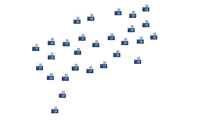 | 32 | 33 | 34 | 35 | 34 | 33 | 33 | 33 | 32 | 32 | 32 | 31 |