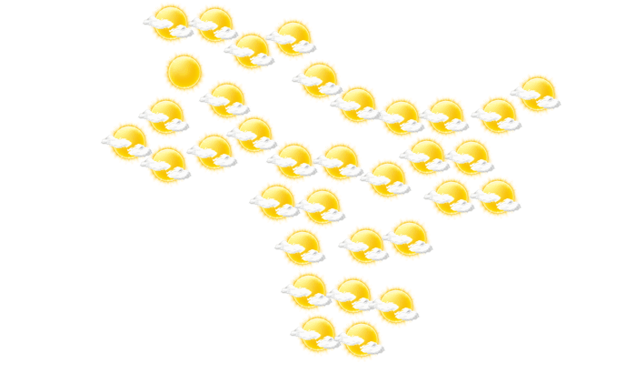 In Kabin Buri scheint am Morgen die Sonne bei Werten von 25°C. Mittags ist es vielfach wolkig, gebietsweise kann sich auch die Sonne durchsetzen und das Thermometer klettert auf 35°C. Abends ist es in Kabin Buri wolkenlos bei Werten von 29 bis zu 31°C. In der Nacht bilden sich vereinzelt Wolken bei Tiefstwerten von 26°C.