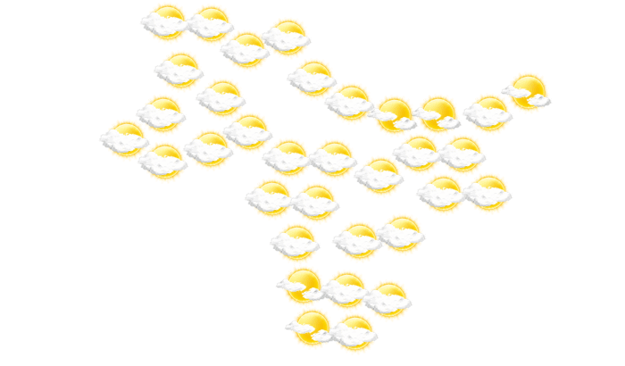 In Wang Nam Yen sind morgens Teile des Himmels mit Wolken bedeckt, die Sonne ist aber zwischendurch sichtbar bei Temperaturen von 20°C. Am Mittag gibt es eine Mischung aus Sonne und Wolken und die Höchstwerte liegen bei 32°C. Abends gibt es in Wang Nam Yen nur selten Lücken in der Wolkendecke und die Temperaturen liegen zwischen 24 und 26 Grad. In der Nacht ziehen Wolkenfelder durch bei Werten von 20°C.