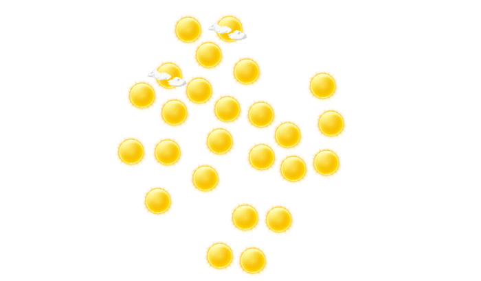 In Ko Samui kommt es den ganzen Tag zu einem Mix aus Sonne und Wolken und die Temperaturen liegen zwischen 27 und 28°C. Nachts bilden sich leichte Wolken bei Tiefstwerten von 27°C.