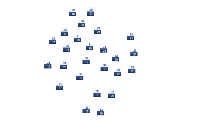 | 32 | 33 | 34 | 35 | 34 | 33 | 33 | 33 | 32 | 32 | 32 | 31 |
