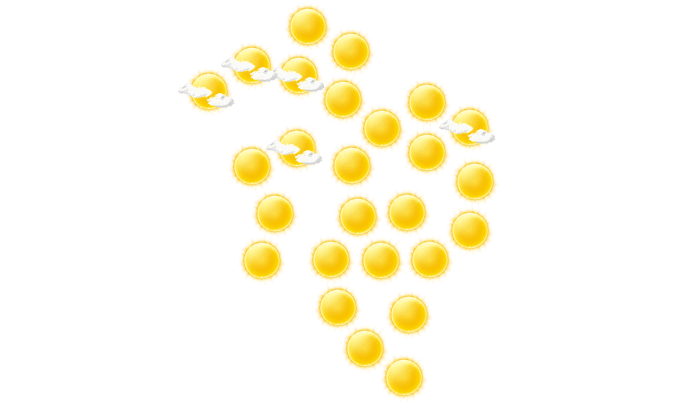 In Tha Mai bilden sich morgens vereinzelt Wolken und die Temperatur liegt bei 23°C. Im weiteren Verlauf des Tages ist es mittags und auch abends sonnig und die Temperaturen liegen zwischen 25 und 33 Grad. In der Nacht gibt es einen wolkenlosen Himmel bei Werten von 23°C.