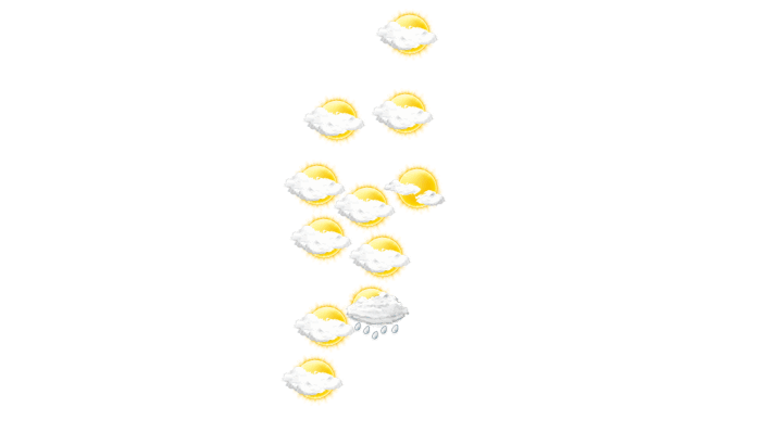 In Chiang Mai bilden sich den ganzen Tag vereinzelt Wolken bei Temperaturen von 23 bis 31°C. Nachts verdecken einzelne Wolken den Himmel bei Werten von 23°C.