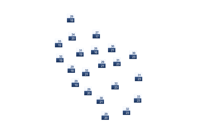 | 32 | 33 | 34 | 35 | 34 | 33 | 33 | 33 | 32 | 32 | 32 | 31 |